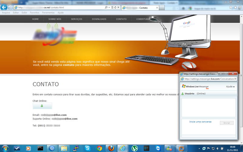 Suporte Online via MSN: qualquer pessoa vai poder entrar em contato com seu msn, independente de ser cliente ou não, no chat online na pagina de contatos.