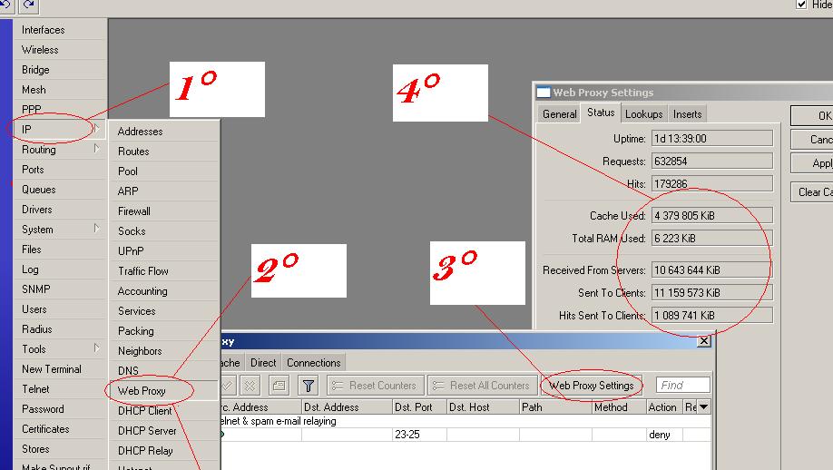 add action=redirect chain=dstnat comment="Web-Proxy + Cache Full" disabled=no \