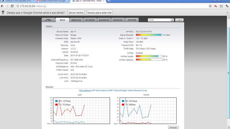 Problemas: Estou tendo uma enorme dificuldade de fazer o ajuste de sinal em ambos os lados eu tenho além dessas antenas uma outra rocketdisk de 34dbi +rocket e o que tenho notado é que na maior parte do tempo eu consigo enxergar o sinal deste sistema e da RB + R52HN não consigo.