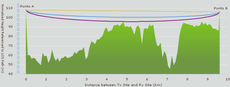 Obs.: Estes cálculos de Link só prevê relevo, ou seja, qualquer outro tipo de possível obstrução como vegetação e edificações que prejudiquem o enlace não são previstos neste cálculo.