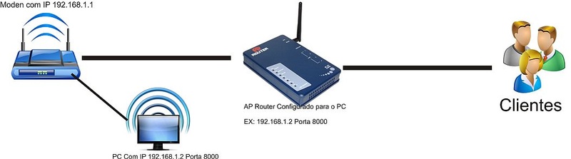 Depois de tudo pronto, o cache instalado e tudo mais, não será necessário mais uma placa de rede, veja a figura de como irá ficar o esquema: