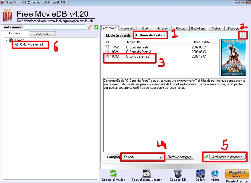 • Vamos usar o programa "Free Movie DB" para pegar a imagem e a sinopse do filme que você escolher, veja a figura abaixo: