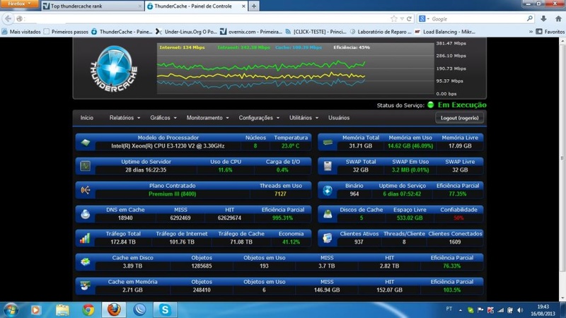 amigo. este print sim me levou a pensar em trocar de cache pois como citeis antes, com up time curto não levo em consideração pois sabemos que para propaganda nego baixa varias vezes o mesmo arquivo ou exibir uma lista de videos em full HD desta forma a aumentar a eficiência do cache, não estou dizendo que faz isto, mas para propaganda quem não o faria, bom vou ver até o fim do ano ando pensando em trocar o spdr por thunder. para testes. minha rede menos de 50 clientes utilizo para testes.