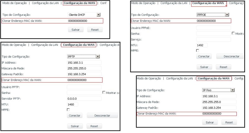 Tem a opção pra habilitar, mas não tem o campo pra colocar o endereço mac clonado