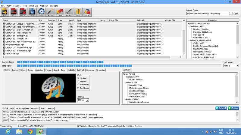 A Maquina Virtual The Dude, esta rodando o Windows 8 64, com o programa MediaCoder, Serviio, The Dude e um servidor de filme, neste momento, ela esta renderizando uns filmes para jogar para os clientes da rede.