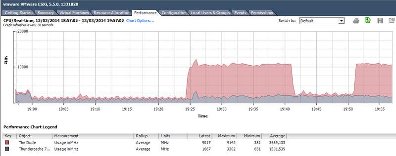 Só que quando eu ligava as 2 VM o desempenho se dividia, não em CPU, mas como se fosse um limite da placa de rede..