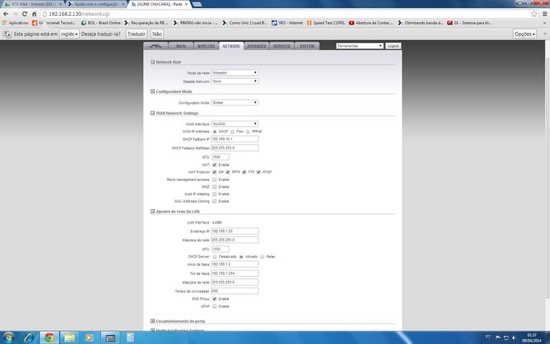quando chego na parte do endereço de ip (192.168.14.1) dae nao consigo mas entra na antena