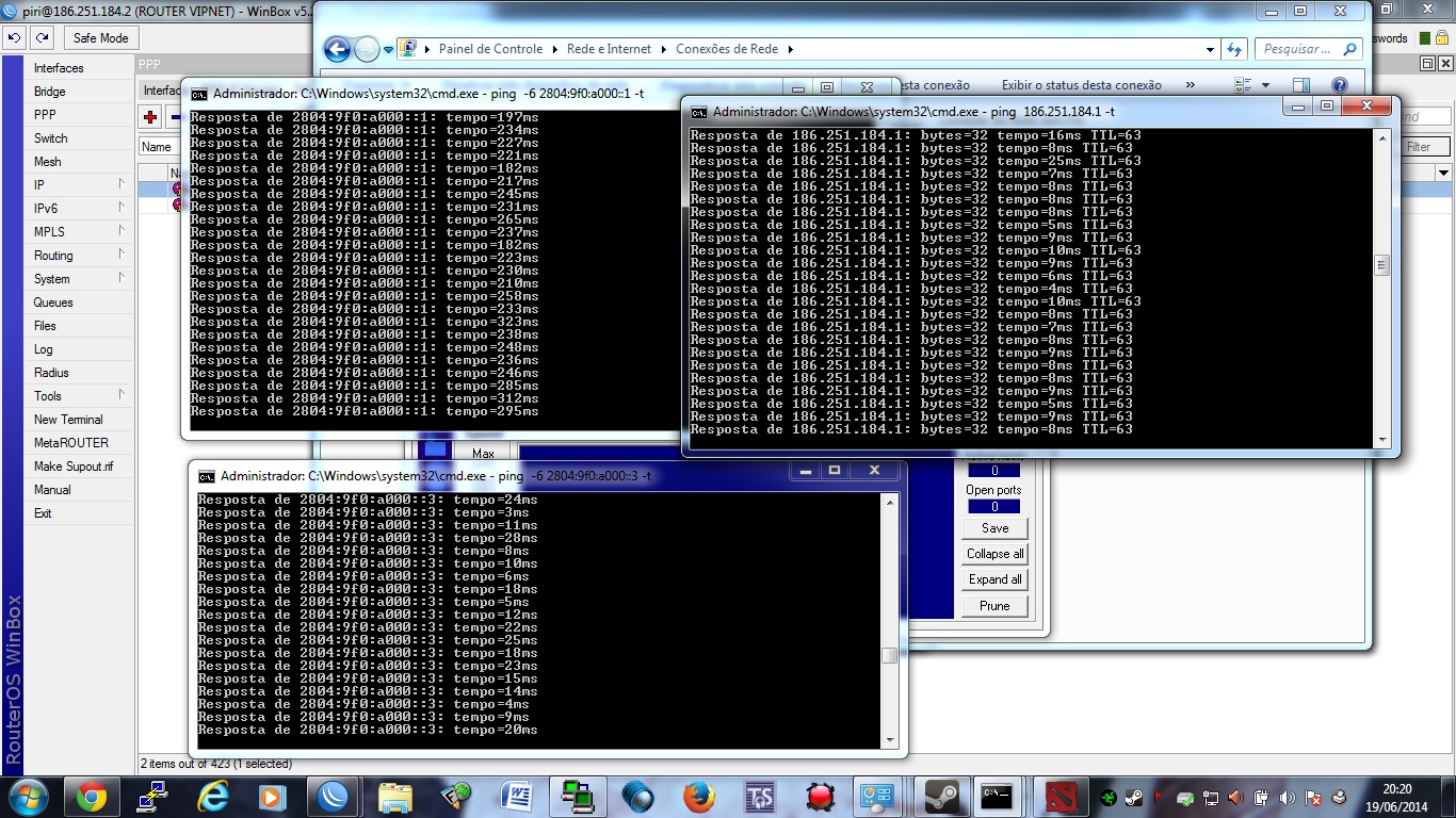enquanto pingava com 10 a 8ms meu border 186.251.184.1 em V4 o mesmo teste na mesma hora em V6 icmp que é totalmente diferente pingava com 300ms