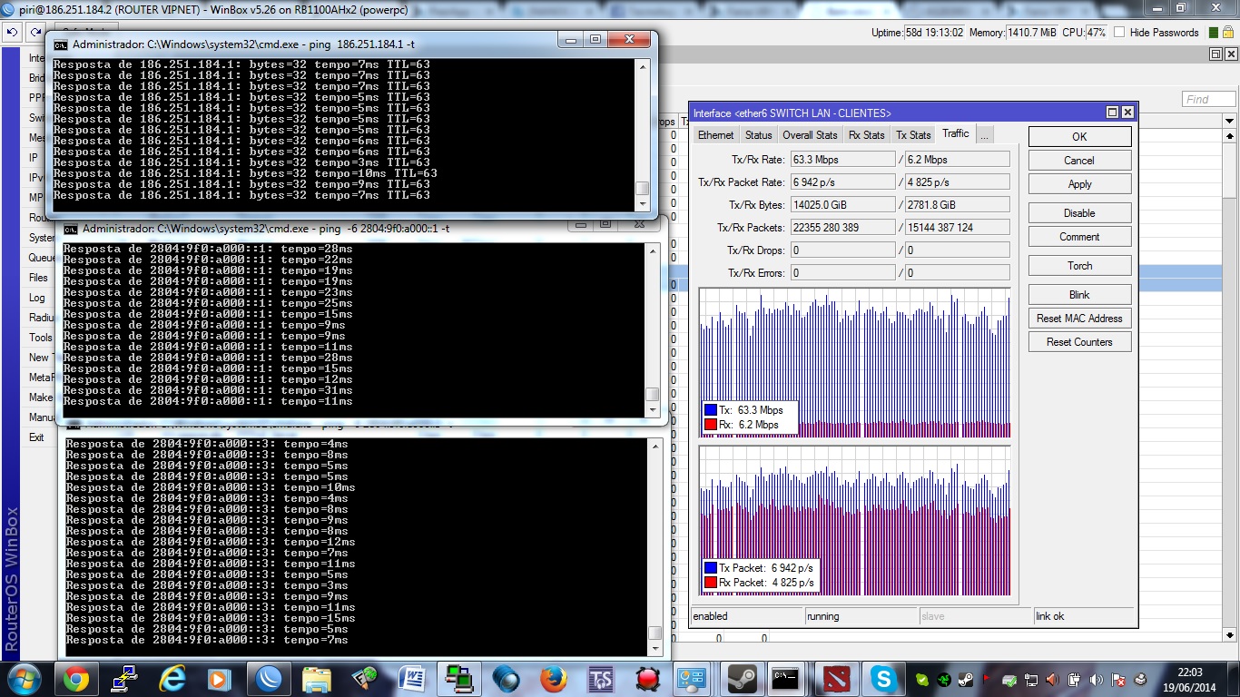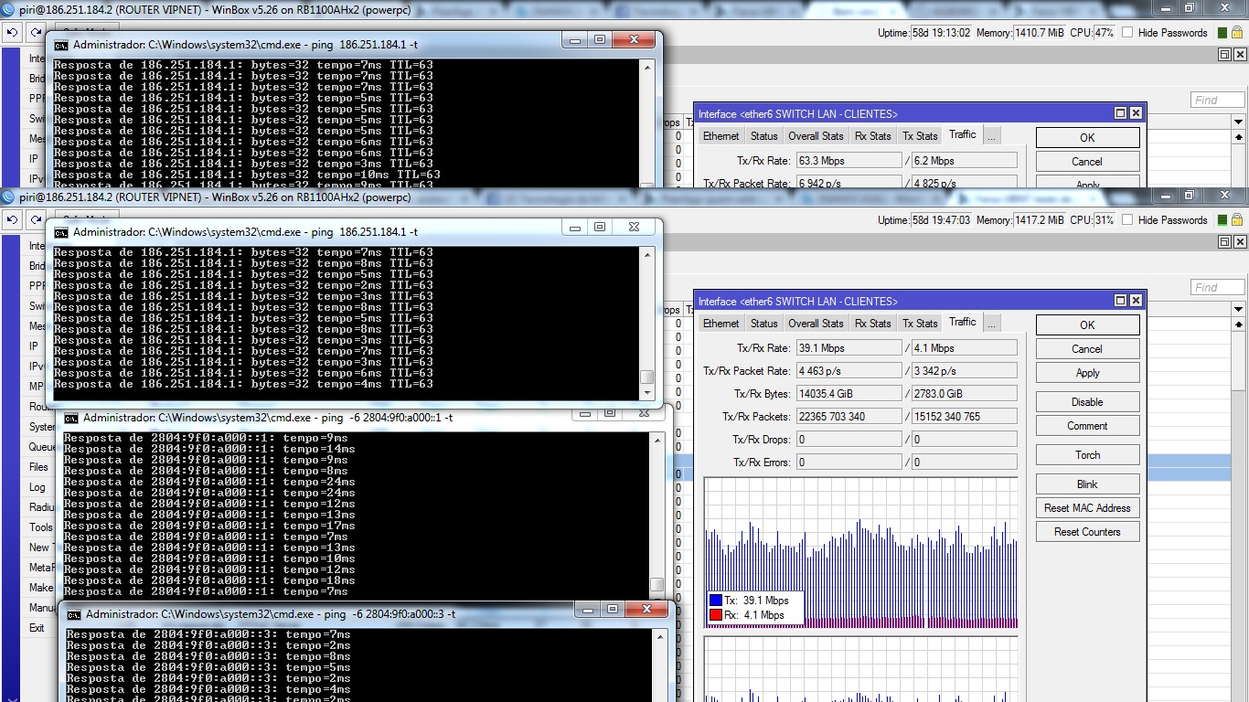 fui convidado pelo nic a fazer o curso IPV6 muitos aqui ja vez e estao implantando, e advinha desconfiei da latencia no horario de pico e setei enderecos IPV6 entre meu border e meu ponto de acesso e minha residencia que fica a 9KM