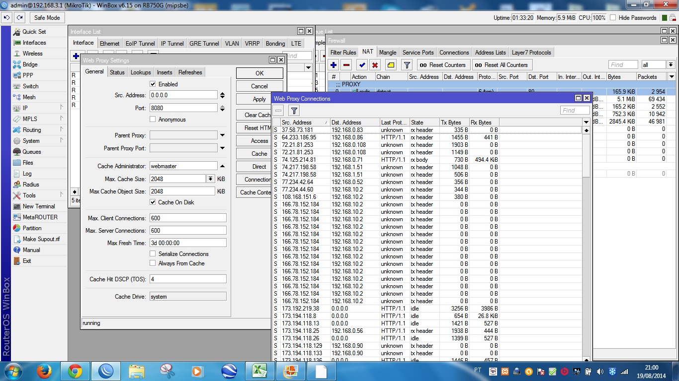 Com Thunder vai sim interferir por que a porta 80 sera direcionada ao thunder primeiramente, portas 443 nao entra no web-proxy pois apenas portas 80 é direcionada ao web-proxy, sobre processamento estar alto é por que nao foi limitado a quantidade de armazenamento do proxy, para melhorar limite para 2048 e não terá problemas com processamento.