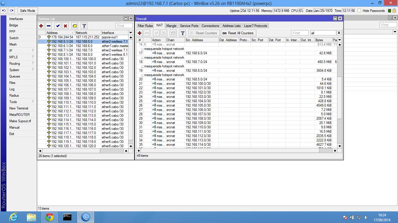 ex: o link sai da rb 1100AHX2 RANGE 192.168.7.1/24