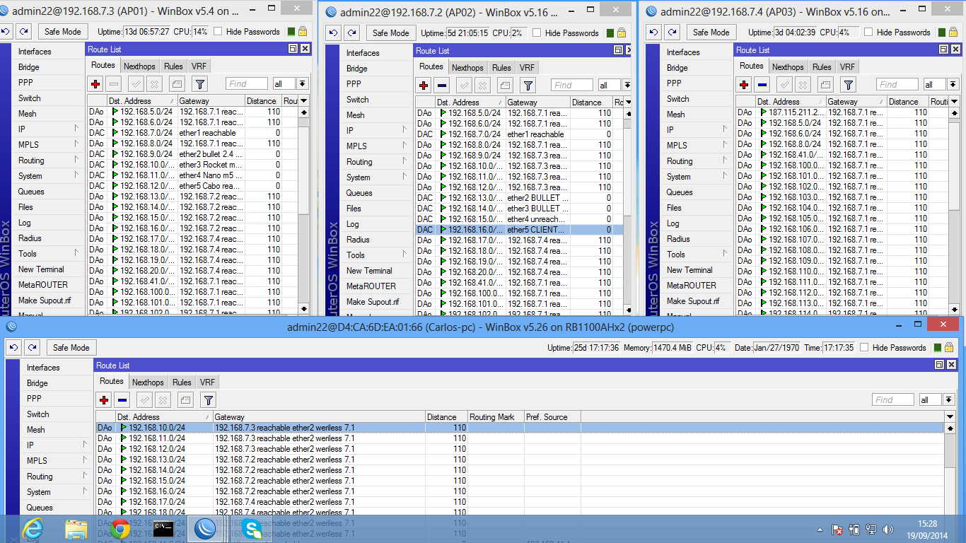 Como esta suas rotas e onde estão os gateway dos rádios?? Pensou em fazer OSPF?