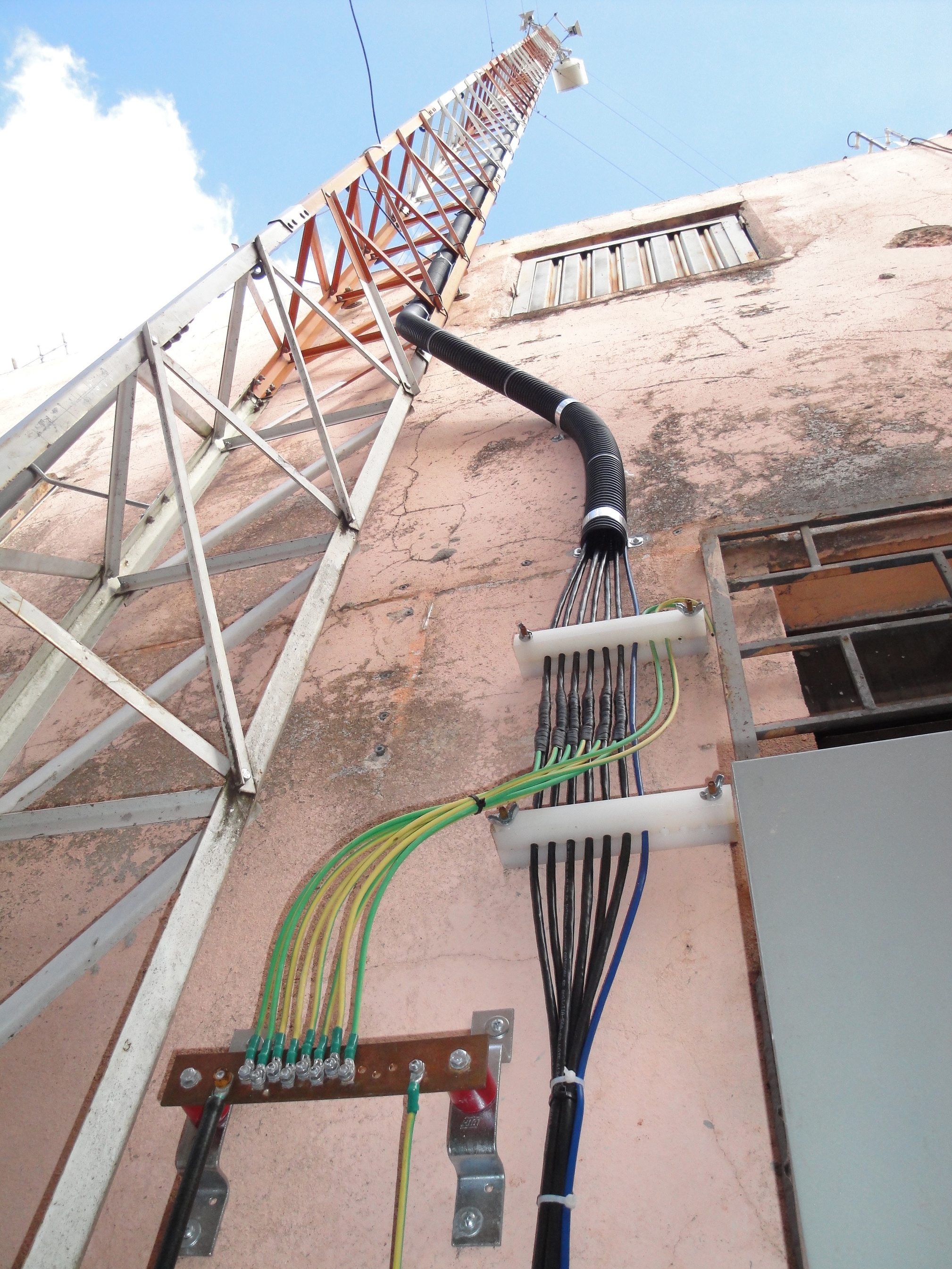aki preferi usar dutos de metal para evitar de receber descarga pelos cabos de rede que sobem para torre.