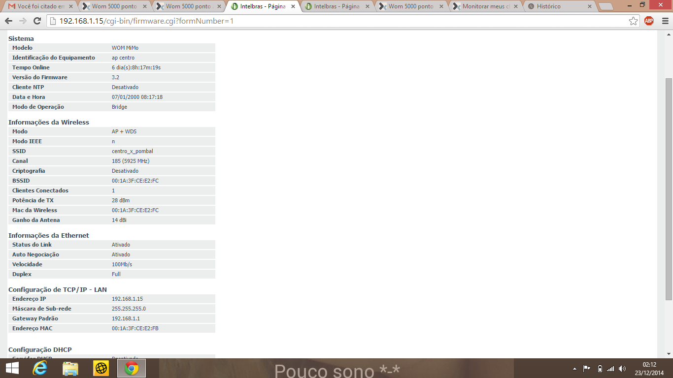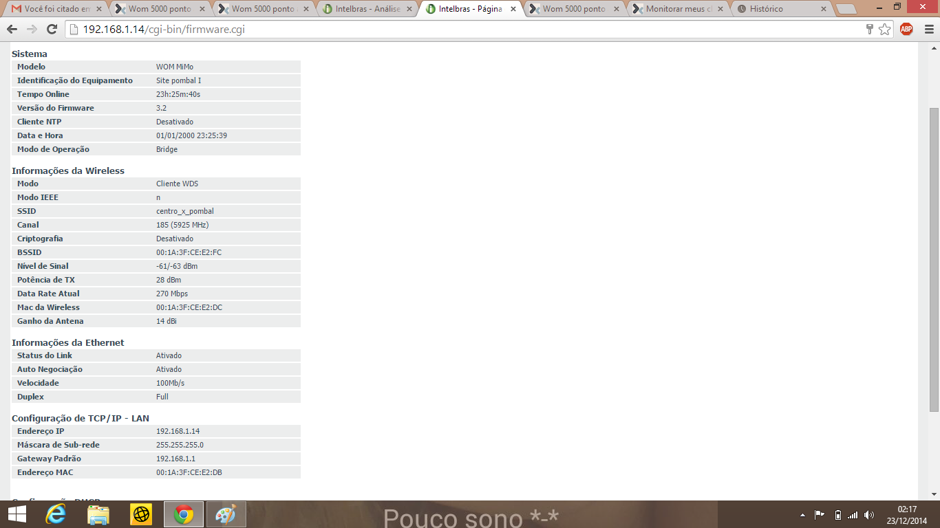 Eu tenho 2 rádios wom 5000 ligados em um link de internet de 30 megas, esses 2 rádios estão em ponto a ponto wds e configurados para trafegar até no máximo 60MBps, a distância entre eles é de mais ou menos 400 metros e estão com visibilidade limpa um do outro, os rádios estão em rede N canal 5375 que é o mais vazio da região, o meu problema é que eu faço o teste no link de 30mb e consigo fazer download a aproximados 3.2MBps, já do outro lado onde recebo esse link ponto a ponto não consigo passar de 6MBps de tráfego teóricos 600k por segundo! será que meus rádios estão com defeito? porque não consigo passa a velocidade que chega no link de ethernet para o radio na outra ponta?