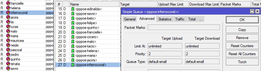 Como pode ver não precisa de regra, aí no queues já fica a prioridade conforme coloquei no mk auth.