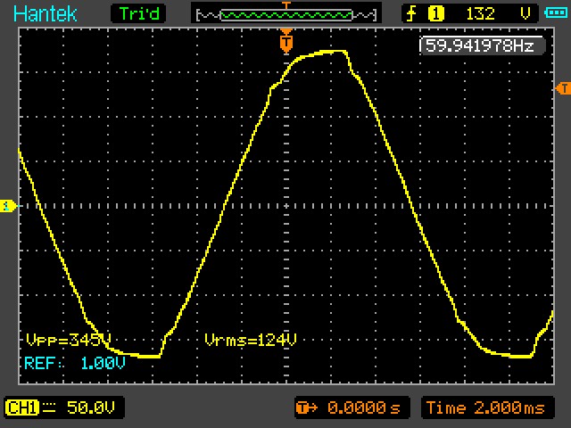 Na prática você obterá da saída 115V dele provavelmente uns 105 a 110V, se medir com multimetro comum (Não um True-RMS) verá tensão tipo 80-85V (Que é o que se mede em nobreak comum alimentado por baterias, dependo do tipo de inversor dele). Essa tensão "errada" que os multimetros lêem é culpa da forma de onda não muito senoidal, a parte de cima da onda (O pico da onda) é justamente onde falta a "senoidalidade", é de onde sai a tensão efetiva que faz os motores pegarem velocidade:
