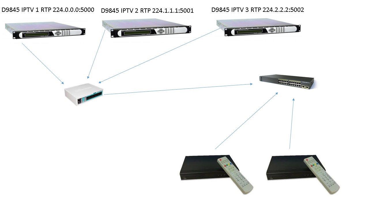 tenho feito alguns testes com iptv como ja tenho os receptores com saida ip configurei 6 fluxos ip em rtp, multicast que da mais ou menos uns 20mb se eu coloco as interfaces em bridge funciona certinho porem chega todos os fluxos em todas as portas, tentei diversas vezes configurar o igmp-proxy e o pim mais to apanhando um pouco, gostaria de uma ajuda com isso alguém pode me ajudar?