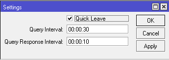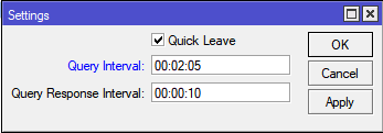em settings do IGMP-Proxy você define quanto tempo demora para fechar a transmissão no meu setei 30 segundos na RB que recebe os canais envia para a RB concentrador e esta setei 15 segundos para fechar o fluxo e a verificação de 10 em 10 segundos.