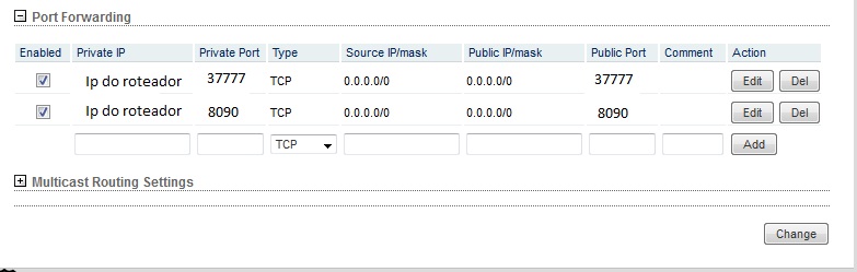 Apos isso, entre no UBNT do seu cliente e redirecione as mesmas portas para o IP da WAN do roteador do cliente (tbm terá que deixar fixo esse ip na WAN do roteador dele).