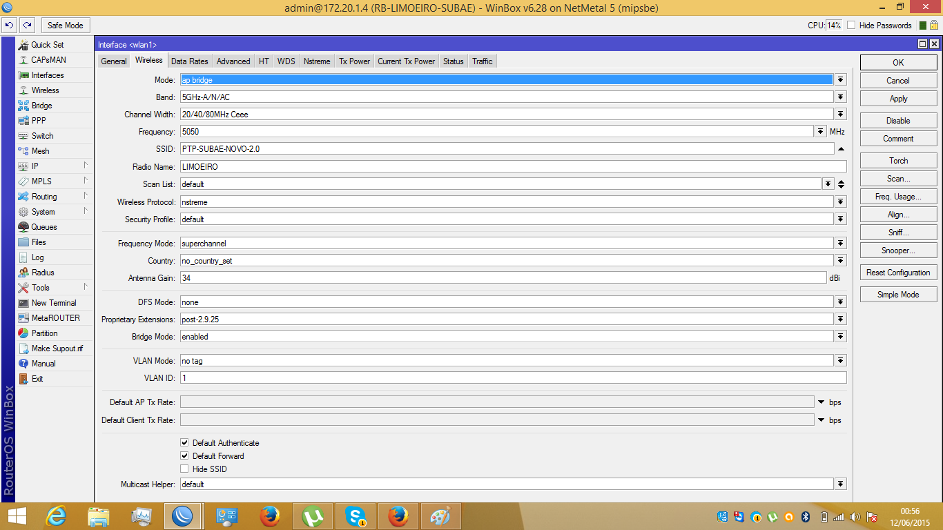 A config. é igual outra RB, só a parte do MCS VHT que muda, mas... nem tem muito o que escolher lá, é um maldito modo pra noobs com tudo automatizado. Pra PTP o datarate dependerá do sinal disponível (Se vai usar MCS0-7, 0-8 ou 0-9, na aba vht mcs).