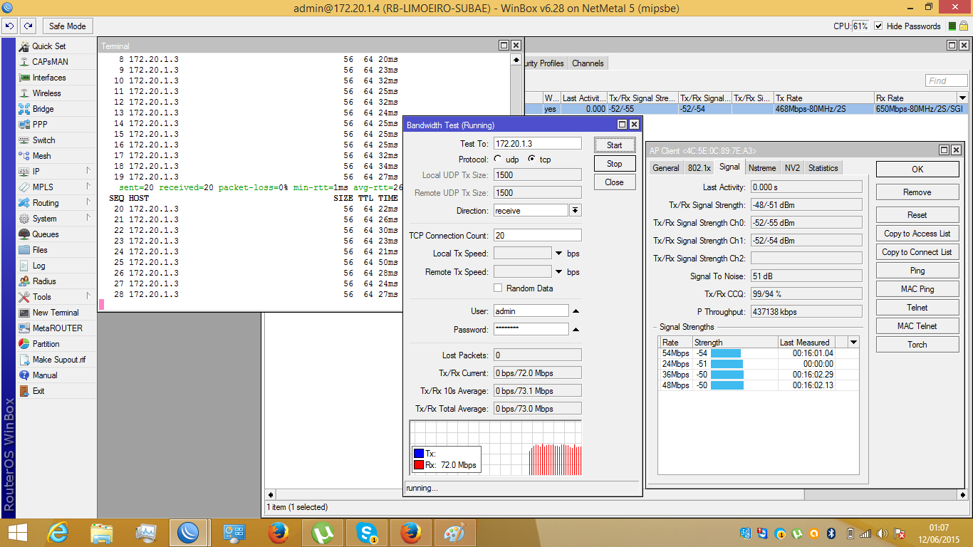 Boa noite Rubem, estou com um enlace de RB922 de 13km com sinal -40db e banda passante de 330Mb(no Btest), gostaria de saber se consigo mais banda real nesse enalace?