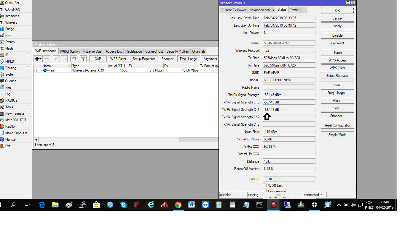 Já se no outro lado o RX não é -66 e sim uns -52dBm, então é só bug besta do software, provavelmente castigo por poluir enormes 80MHz a toa, pra passar míseros 100Mbps.