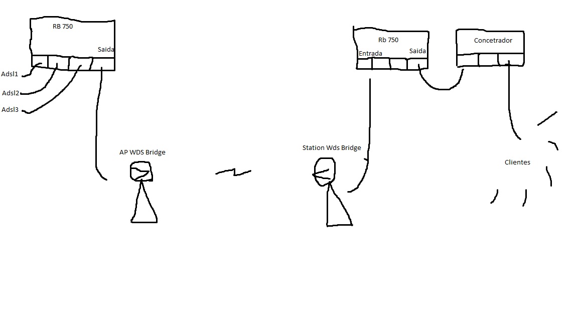 Gostaria de uma ajuda para min conseguir trazer os Link adsl que tem em x cidade ate minha cidade para uma rb que tem em minha casa fazer a discagem, eu fiz um teste em bancada para trazer em Vlan, fucionou correto cirei 3 vlans porta de saida, criei uma bridge comunicando cada vlan com sua ether de entrada e setei o ID da vlan para no outro ponto se comunicar OK, em banca fucionou correto porem quando coloquei para rodar no meu ptp não fucionou, onde as linhas adsl estão passar por 4 ptp ate chegar em casa porem estão todos em Bridge + WDS, estou desconfiado que seja o switch que tenho no meio do caminho que não é nem gerenciavel e nem vlan, soube que da para fazer isso com Tunel EoIP ja vi uns videos porem nada relacionado ao que desejo, obs: simplesmente podia fazer o load balance na outra cidade e trazer os link porem para oque desejo preciso ter os links discado aqui em casa..
