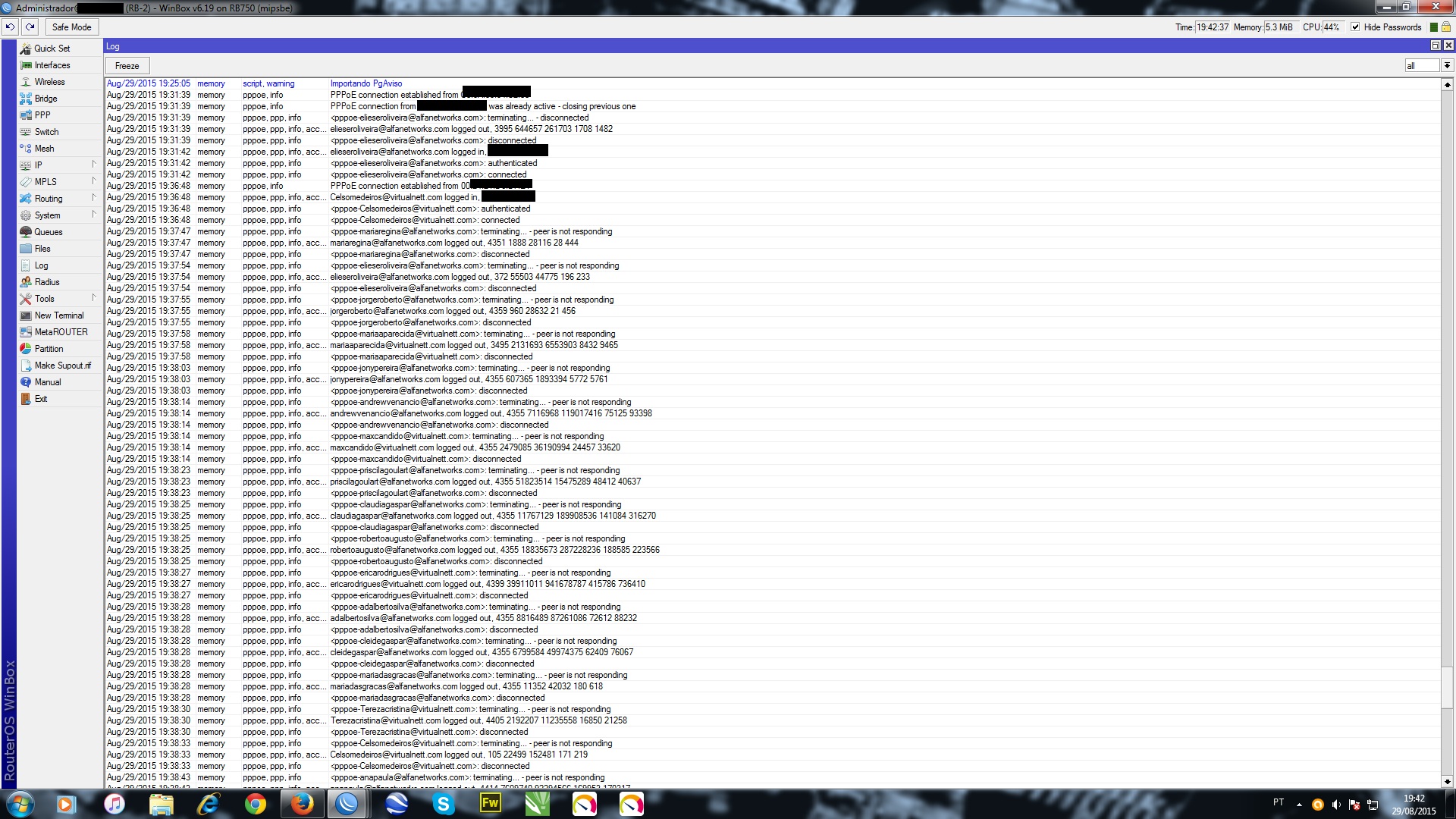 Clientes PPPoE se desconectando direto,minha rede é cabeada,roteada(ospf),a RB-1(borda) manda o link pra RB-2 onde os clientes se autenticam,da uma certa hora que os clientes começam a cair(se desconecta),a cabeça já esta a mil aqui sem saber por onde começar,fonteVDC160v,RB...