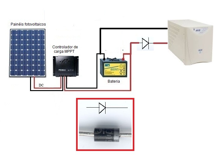 Oi Rubem, tópico antigo, mas achei sobre o assunto que eu tava procurando. Tenho uma bateria de 75Ah estacionaria em um nobreak APC de 600VA apenas, ele até carrega, mas demora demais. Essa solução que você deu é viável? Basta soldar um diodo no meio do caminho no positivo em direção ao nobreak? Qual capacidade escolher pra esse diodo? Eu comprei um carregador inteligente externo de 12A de capacidade de recarga, ia fazer manualmente de vez em quando ou quando precisar, depois de uma descarga profunda, um carga com o carregador, desligando os cabos do nobreak, mas fazer isso manualmente tornaria tudo meio incomodo. Se solucionar só com um diodo no meio do cabo positivo, vou fazer.
