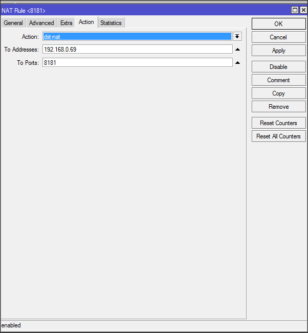 Ainda na RB redirecionei as portas para o IP 192.168.0.69 mencionadas acima.