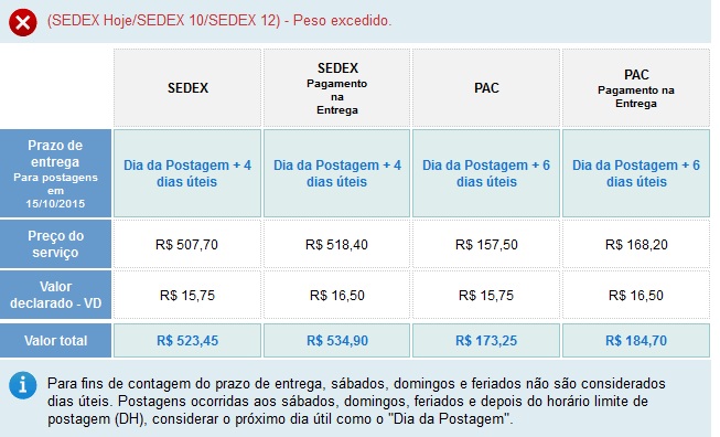 Sedex eu tenho medo de calcular, última vez que ví foi algo tipo R$ 600 por uma caixa de TV Led 42", fiquei com medo de eles começarem a cobrar só pelo cálculo no site!