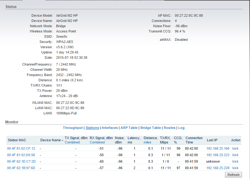 Airgrid M2HP em modo acess point, segurando 5 cliente com ambos um airlive 5460ap, eles todos estão setado no proprio airlive um controle de banda de 2mega, (obs: minha internet é adsl da gvt 50 mega)Clique na imagem para uma versão maior