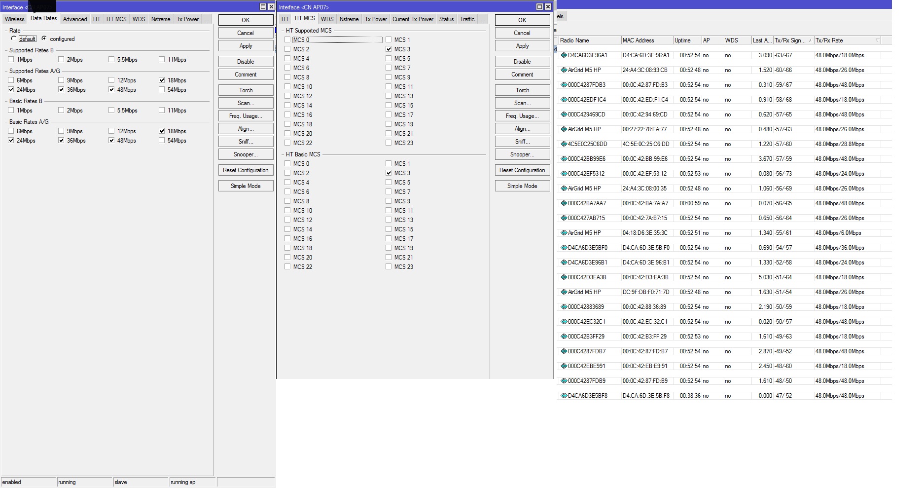 depois de ler este topico, fiz algumas alterações de rate e mcs, depois disso consegui uma banda passante de 24MB. perfeito, é exatamente oque eu precisava.