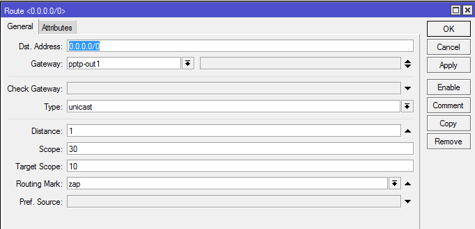 em ip routes crie esta regra