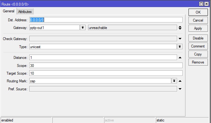 não esqueça de desmarcar as caixinhas on demand e add default route