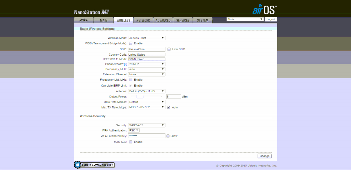 Em minha inocência, acredito que cometi um erro, solicitei a compra de três Ubiquiti NanoStation M2, meu plano era apontar um para cada uma das três ruas que precisaria atender e correr pro abraço, porém, aí veio o problema, a conexão ficou instável, fica caindo e o sinal não ficou tão bom quanto eu imaginei. Configurei os três Ubiquitis com a mesma configuração, só alterando o nome e IP dos equipamentos, o SSID das redes, as senhas e demais configurações estão iguais. Vou printar as telas com as configurações e anexar também.