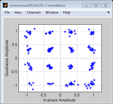 Também tem esquema de pós distorção, pra melhorar legibilidade (Depois do ADC, tem o circuitinho que faz a transformações de Fourier, ele manda pro circuito detector de símbolo, esse circuito tem uns esquemas de decidir, não apenas definir, melhor a posição, e falo decidir porque as vezes algo estão no meio do caminho mesmo e não tem como saber de onde é, o circuito não aleatoriza a escolha, ele analisa os dados pra tentar descobrir se é desse ou daquele ponto), mas, esses diagramas são tirados DEPOIS de passar por esses circuitos (Que ficam na entrada dos chipsets de RF). Sem eles isso seria uma figura ilegível qualquer.