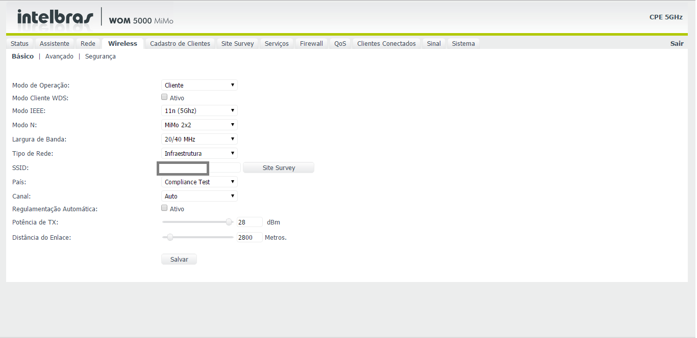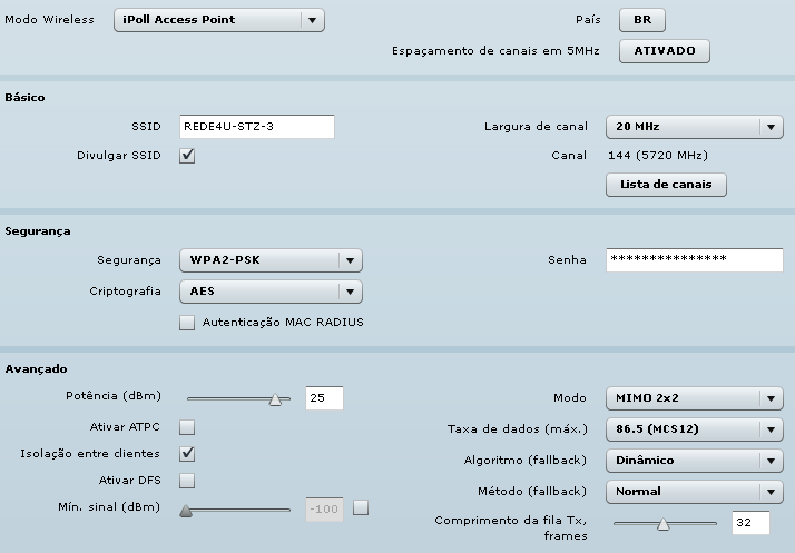 bom ai eu seto ACK para todas wom em 2800, minha wom mais longe esta a 3km da torre! Modo deixo em 11n, deixo forca maxima tbm 28 dbm