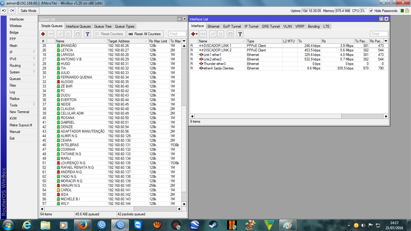 tenho um mikrotik no pc com dois links em pppoe da mesma operadora saindo p os clientes na mesma faixa de ip