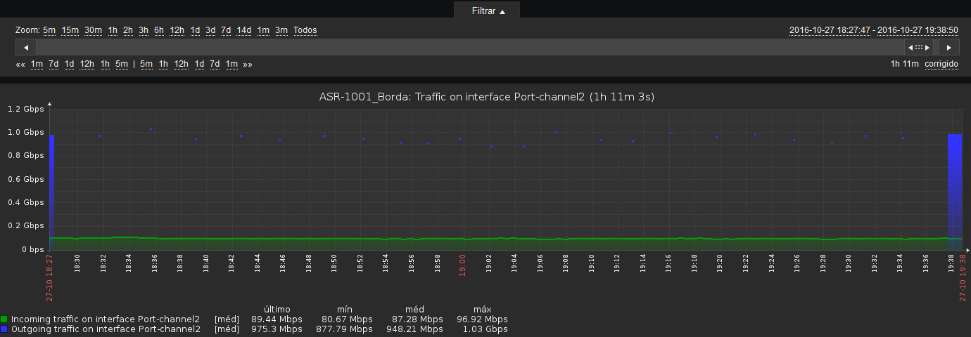 O problema começa sempre que o trafego nas interfaces ultrapassam a faixa dos 600 Mbps.