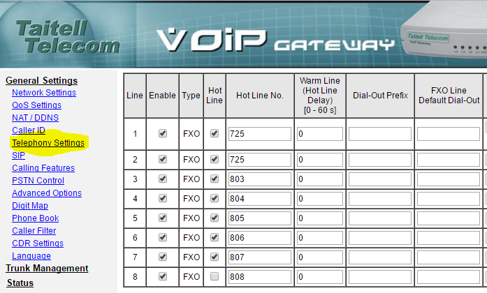 O @eduardomazolini vi ali que tá usando um gateway taitell. Eu tô com um aqui que não consigo fazer ele NÃO ficar caçando (modo Hunting) as linhas. Eu gostaria que ele ficasse com a porta fxo associada a conta sip que é configurada, exemplo, quando eu originar a chamada pela conta sip da porta 1 sempre sair pela porta fxo 1, no meu caso mesmo que eu mande sempre a chamada pela conta sip 1, ele fica mandando pela próxima porta fxo, até completar o ciclo. Sabe se o taitell tem como configurar assim?