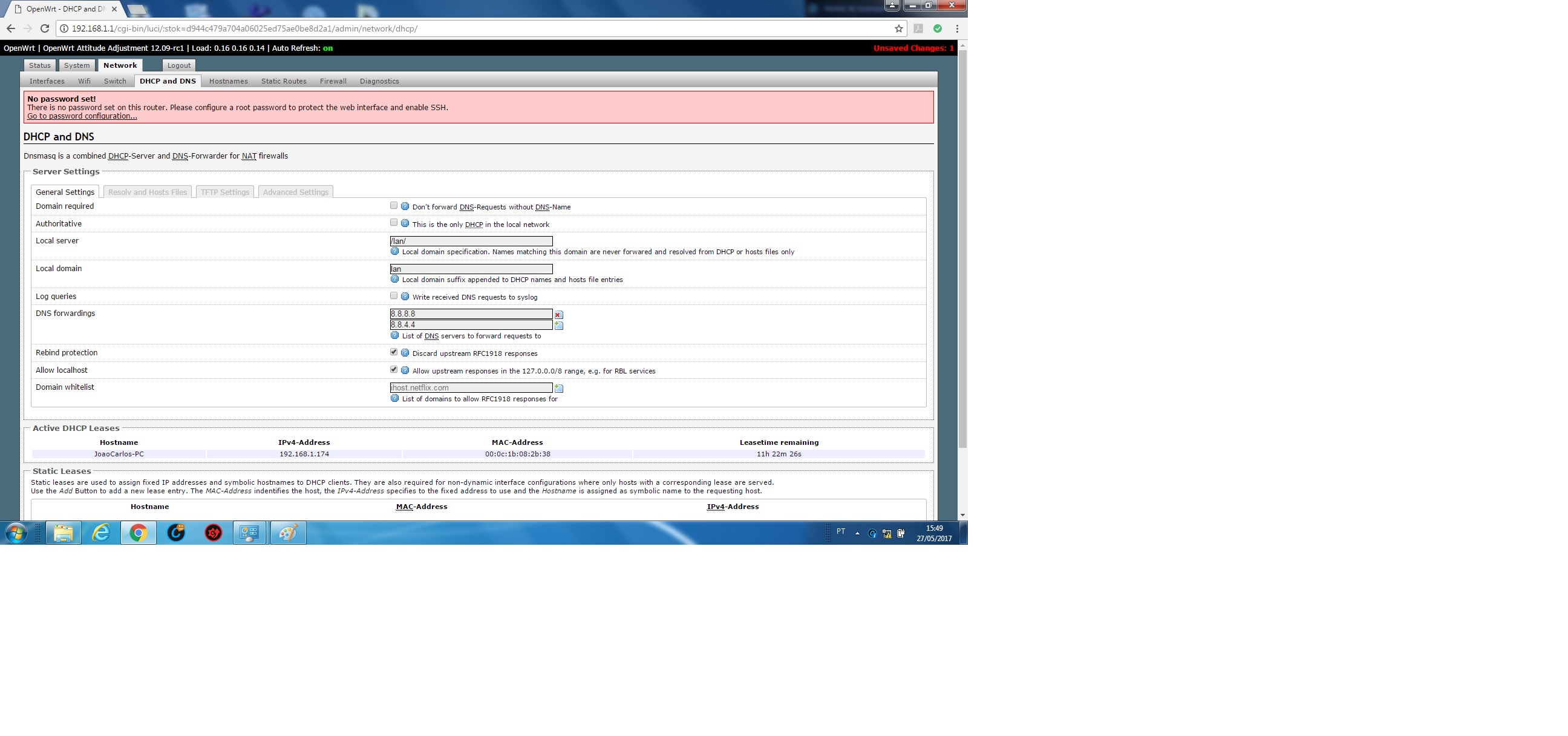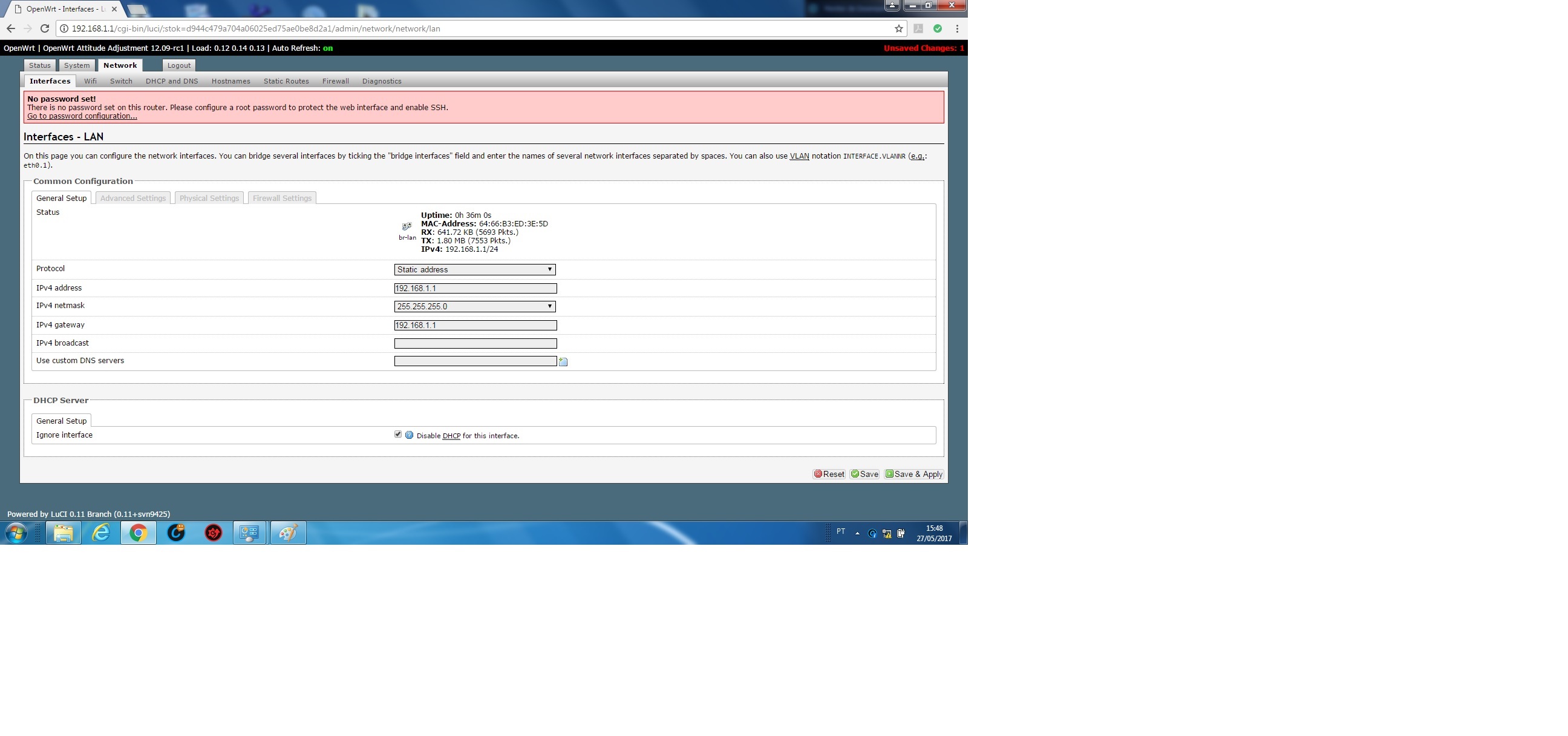 Caso não consiga vou ter que reconfigurar o modem como roteado e deixar ele discar o PPPoE. Mas minha primeira opção ainda seria deixar o modem em bridge.