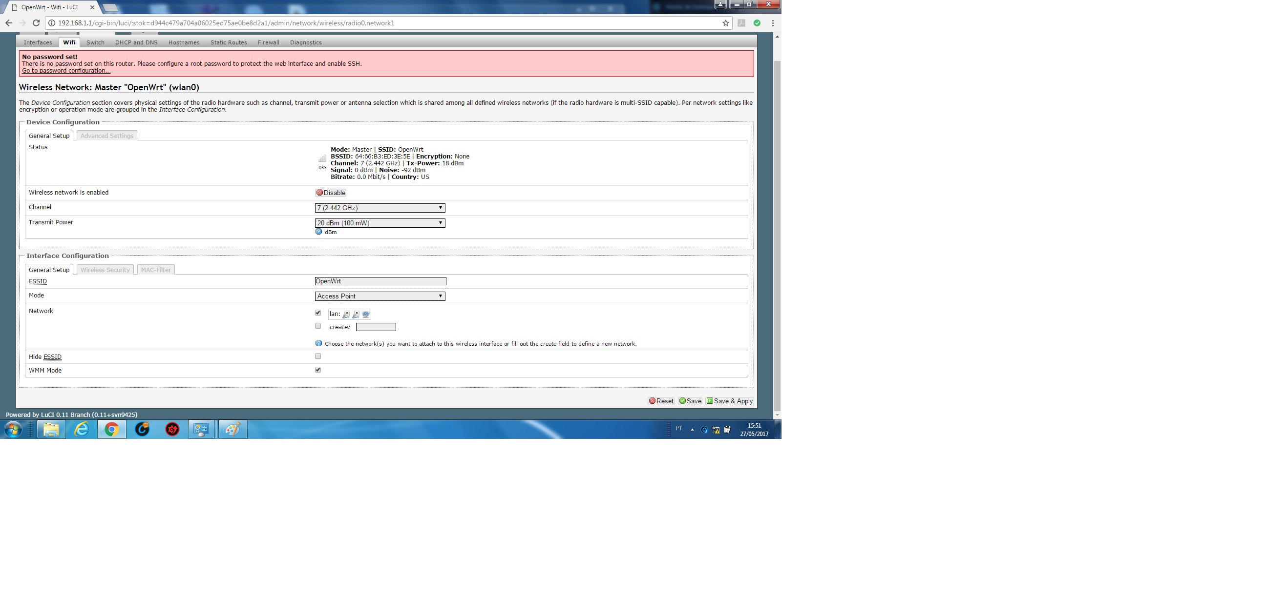 Lá naquela aba physical settings dalan, testa deixar a caixa de bridge marcada, mas marca em baixo só eth0 (lan) e wireless.
