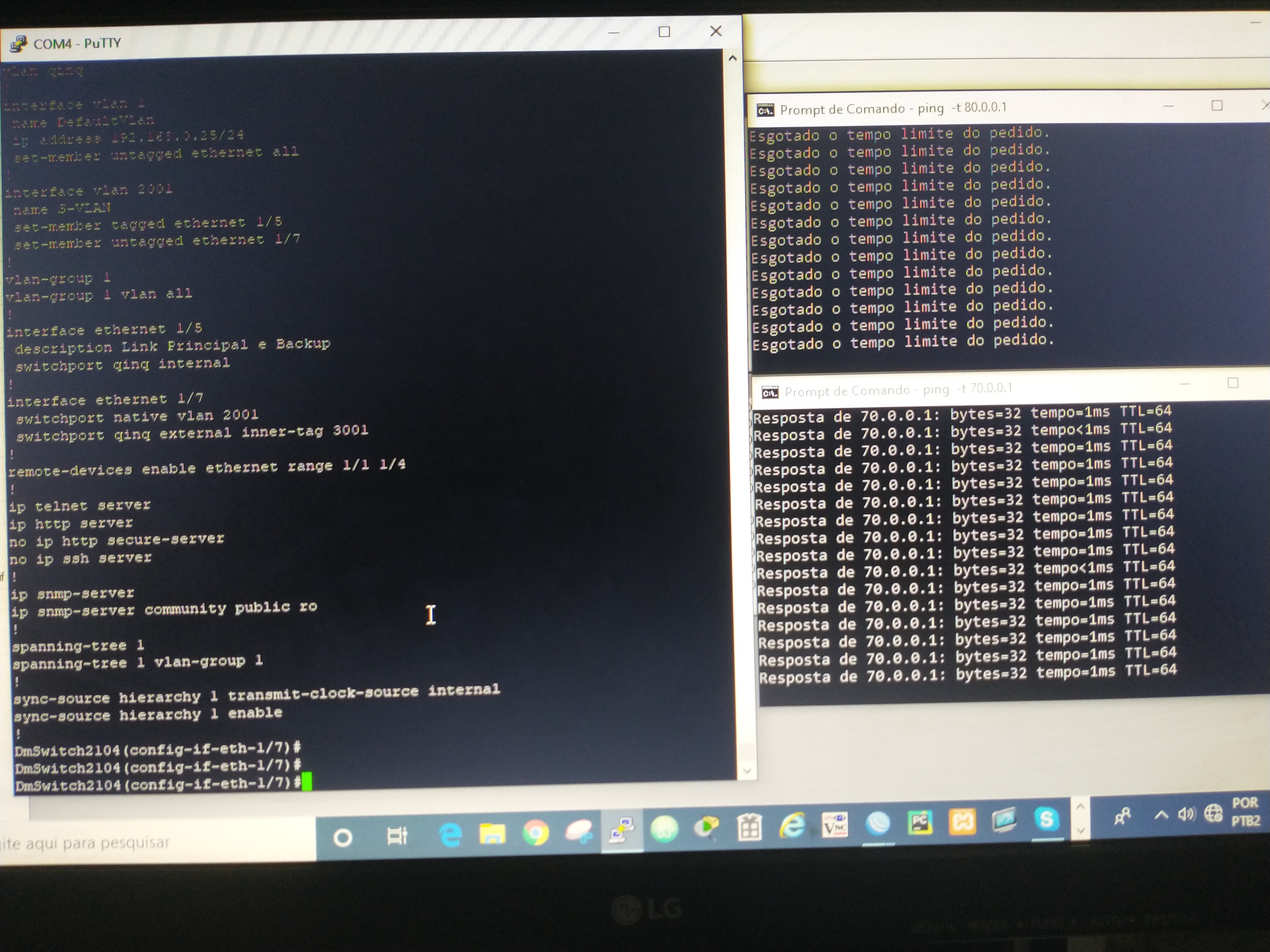 Quando executo sh running-config para verificar se essa configuracao está ok, não aparece o comando (switchport qinq external) na interface 7 e para de pingar conforme foto em anexo.