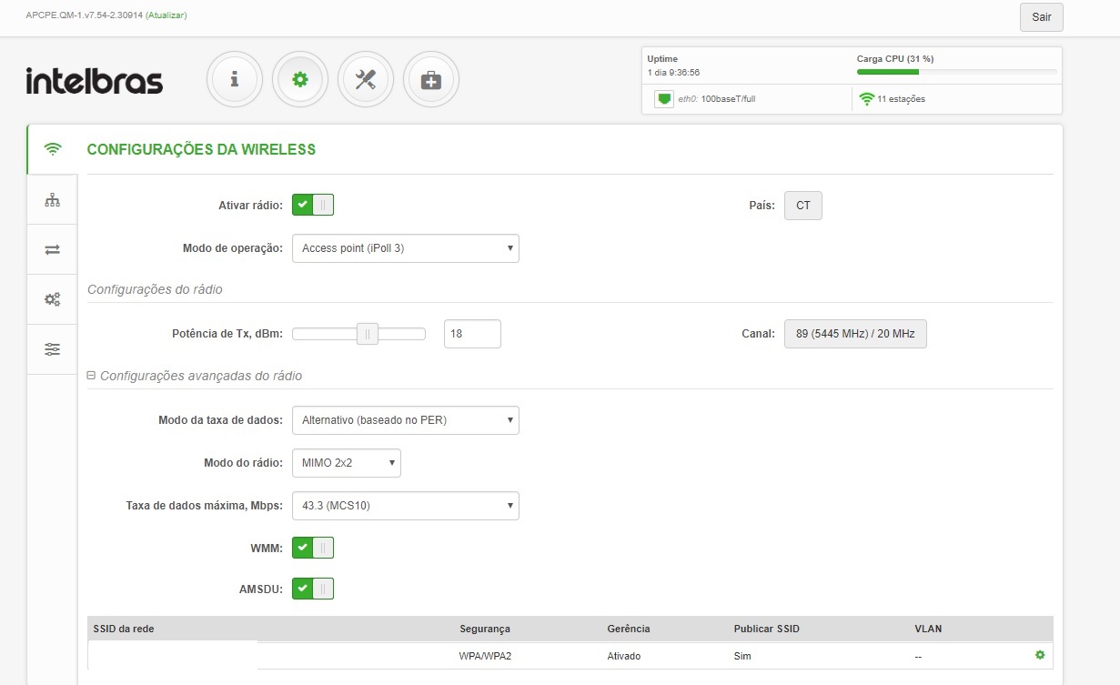 Sobre as print de configuraçao e nao vejo necessidade alguma, esse radio nao tem nada de mais em suas configuraçoes. Ja testei todos os modo no ap desde N puro a IPOLL3 e acontece o mesmo problema nas 4 basestation.