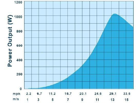 Um que promete 2000W vai fornecer 2000W provavelmente só com vento de uns 12m/s (Metros por segundo, multiploca por 3,6 (Pois a hora de 3600 segundos) pra saber quantos km/h dá, 12*3,6 = 43km/h). E 12m/s, ou 43km/h, é muito vento.