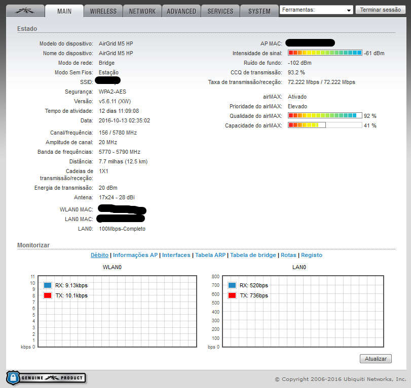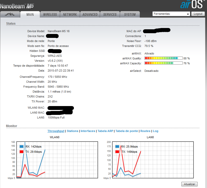 Testa fixar o data rate no PTP urbano e curto em digamos MCS5, e o rural em MCS4 (E talvez MCS3 depois), esse sinal -66dBm (Esquece a barrinha firulenta em cima, cuida os números em baixo, nivele pelo pior, que é -66dBm) é pouco pra data rate alto, só serve pra data rate mais baixo.