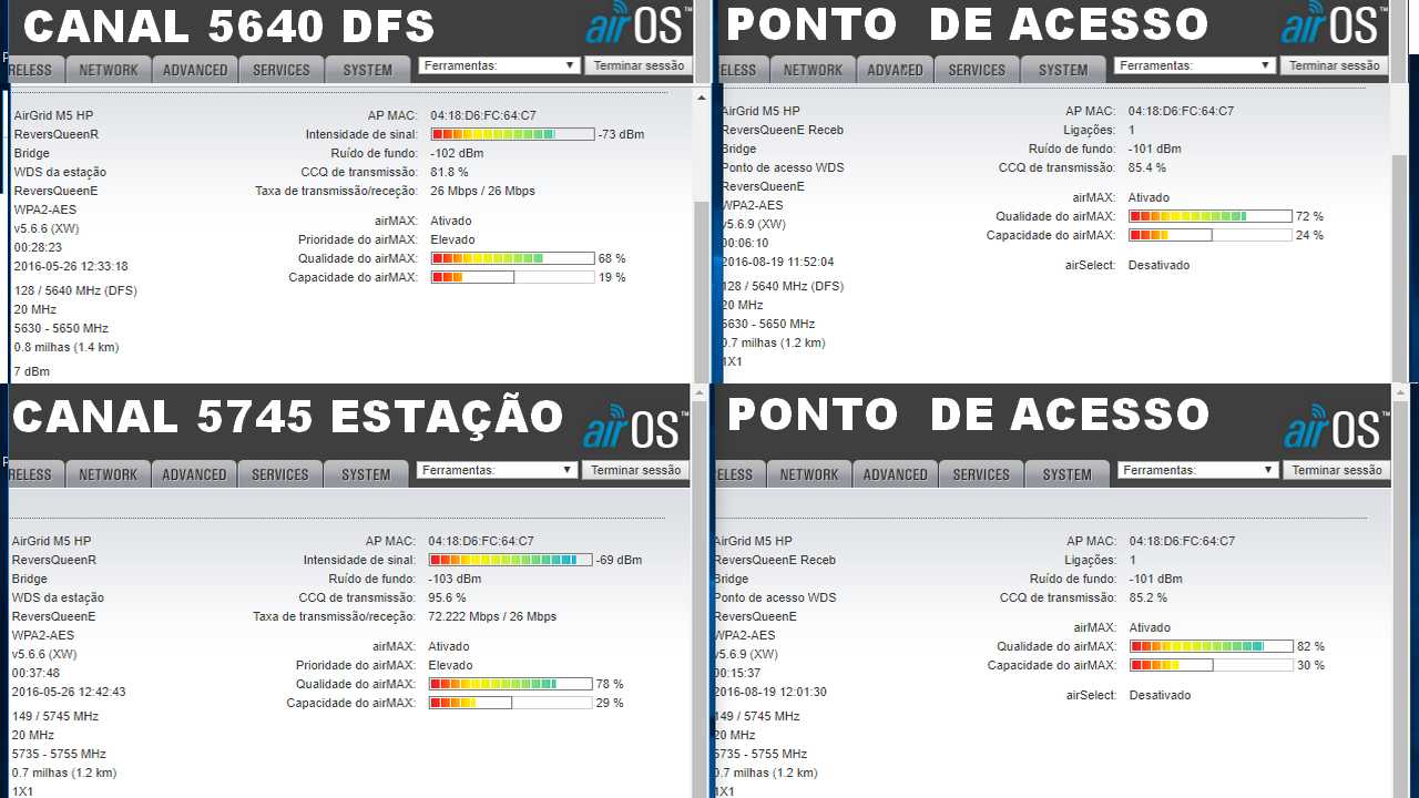 Ex: a distancia eu ajustei p/ 1.6 KM uns 21% a mais e depois marquei auto??? escolhi o canal 5640 DFS Amplitude do Canal 20MHZ??