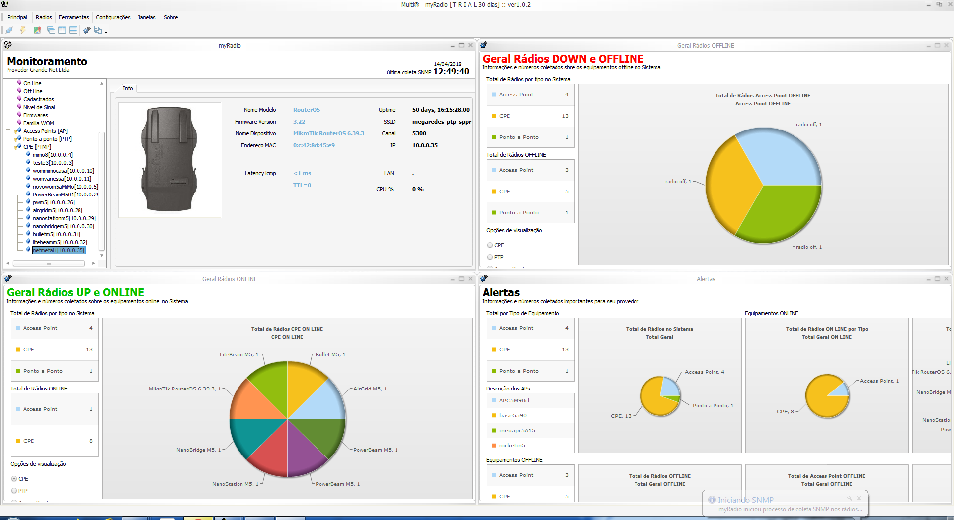Re: Sistema de Monitoramento SNMP myRadio para Rádios Outdoor Intelbras, Ubiquiti e Mikrotik