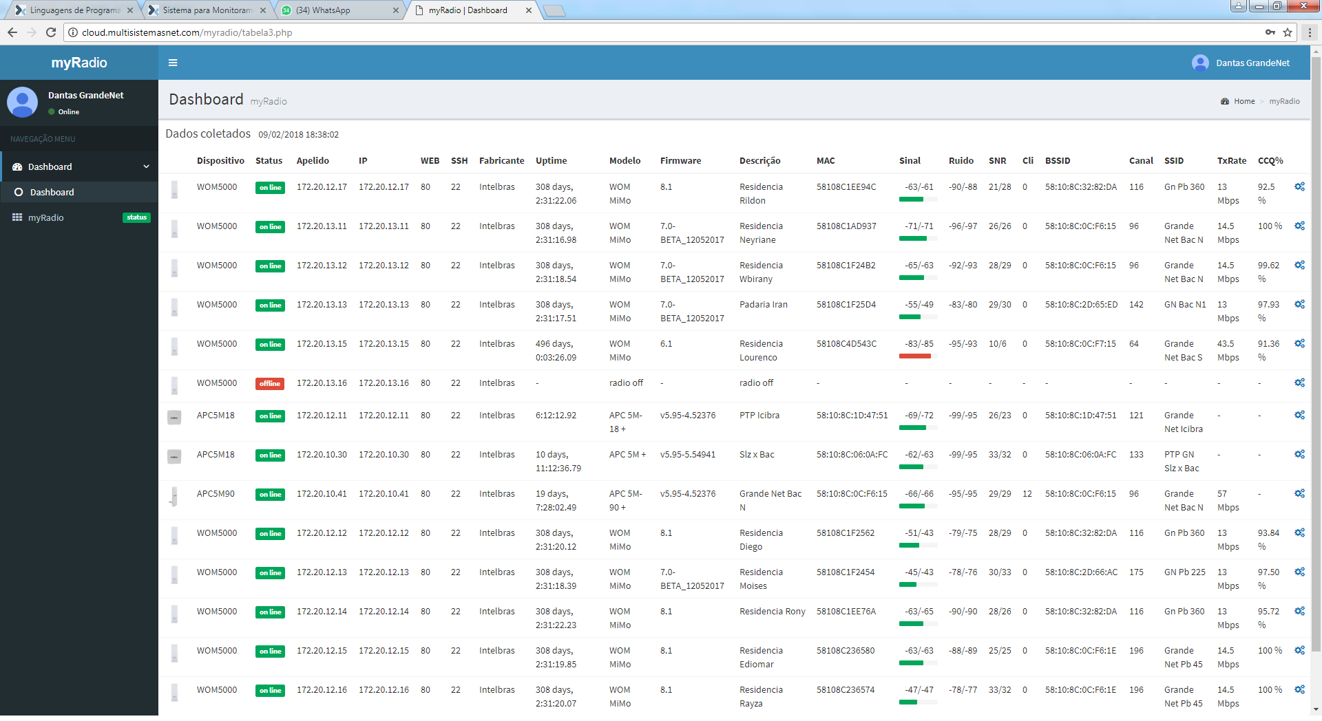 Sistema de Monitoramento SNMP myRadio para Rádios Outdoor Intelbras, Ubiquiti e Mikrotik